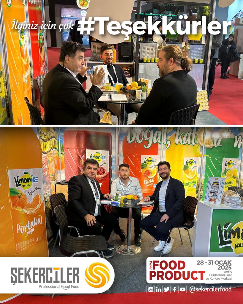 🇫🇷 Du 28 au 31 janvier 2025, nous étions au salon Food Product à Antalya Anfaş ! Merci à tous les visiteurs pour l’intérêt porté à notre stand. Nous sommes ravis des retours positifs de nos invités qui ont apprécié le goût de nos jus de fruits.